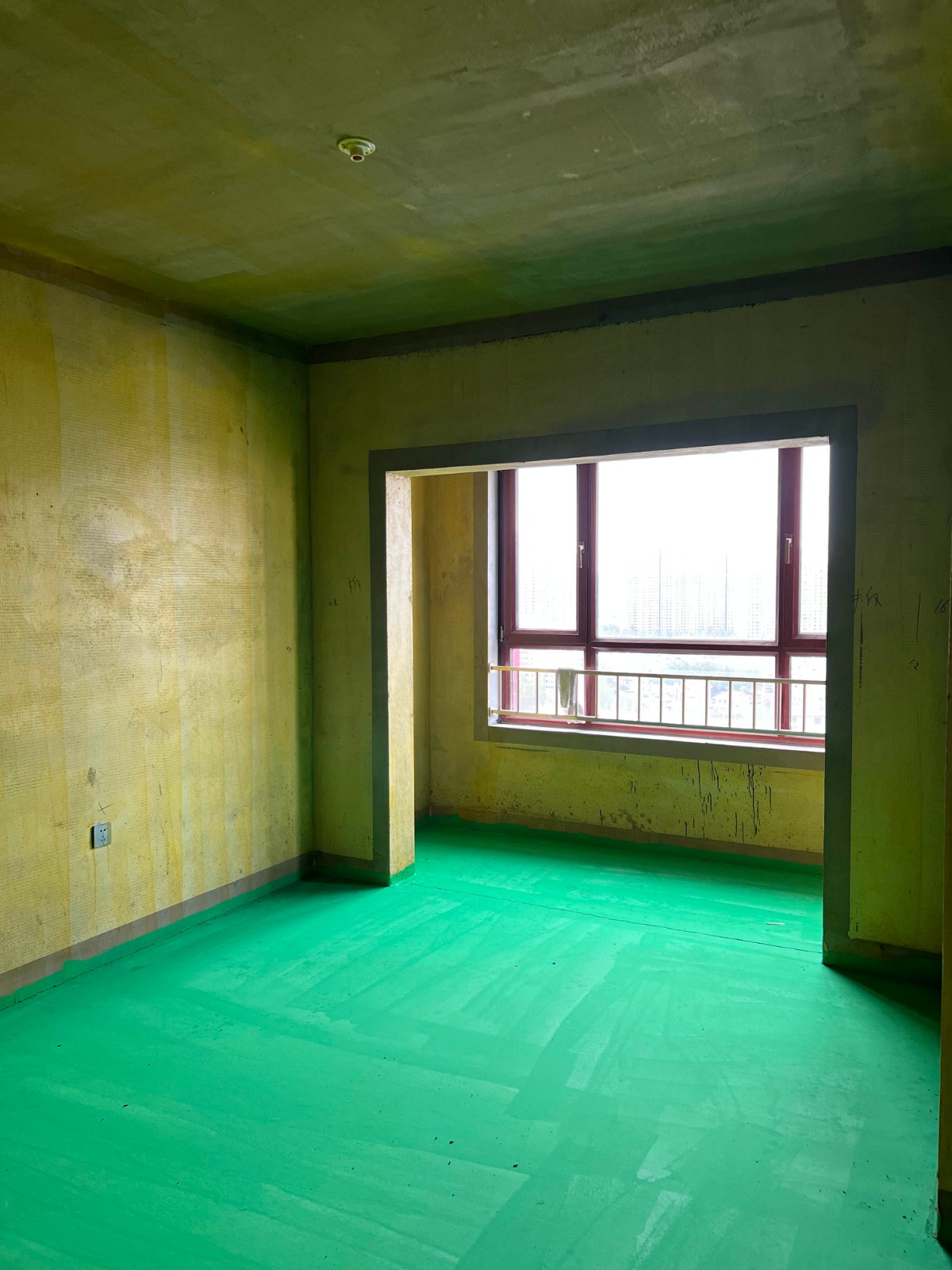 很多工地都會給墻面和地面涂成這樣黃黃綠綠的樣子,這些黃黃綠綠的涂料就是墻固和地固,墻固和地固本質(zhì)上是屬于無甲醛環(huán)保型的界面膠,是膠水的一種類型。