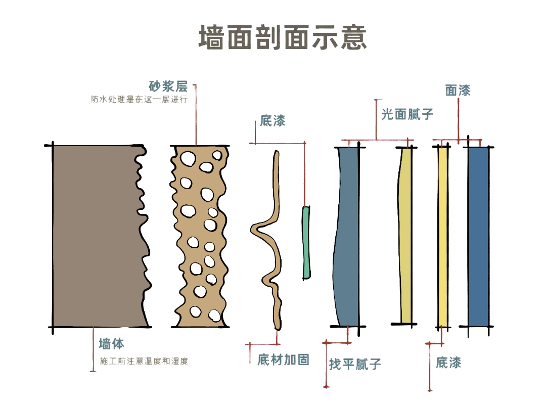 這兩種主要就是用來硬化墻面地面基層的界面處理劑,滲透進入墻地面基層強化其密實度,使其更加牢固,粘接力更強;如果空間墻面本身就有起砂或者脫粉現(xiàn)象,刷上墻固,后期刮膩子刷油漆能夠更好更牢固的粘接在墻面基層上。